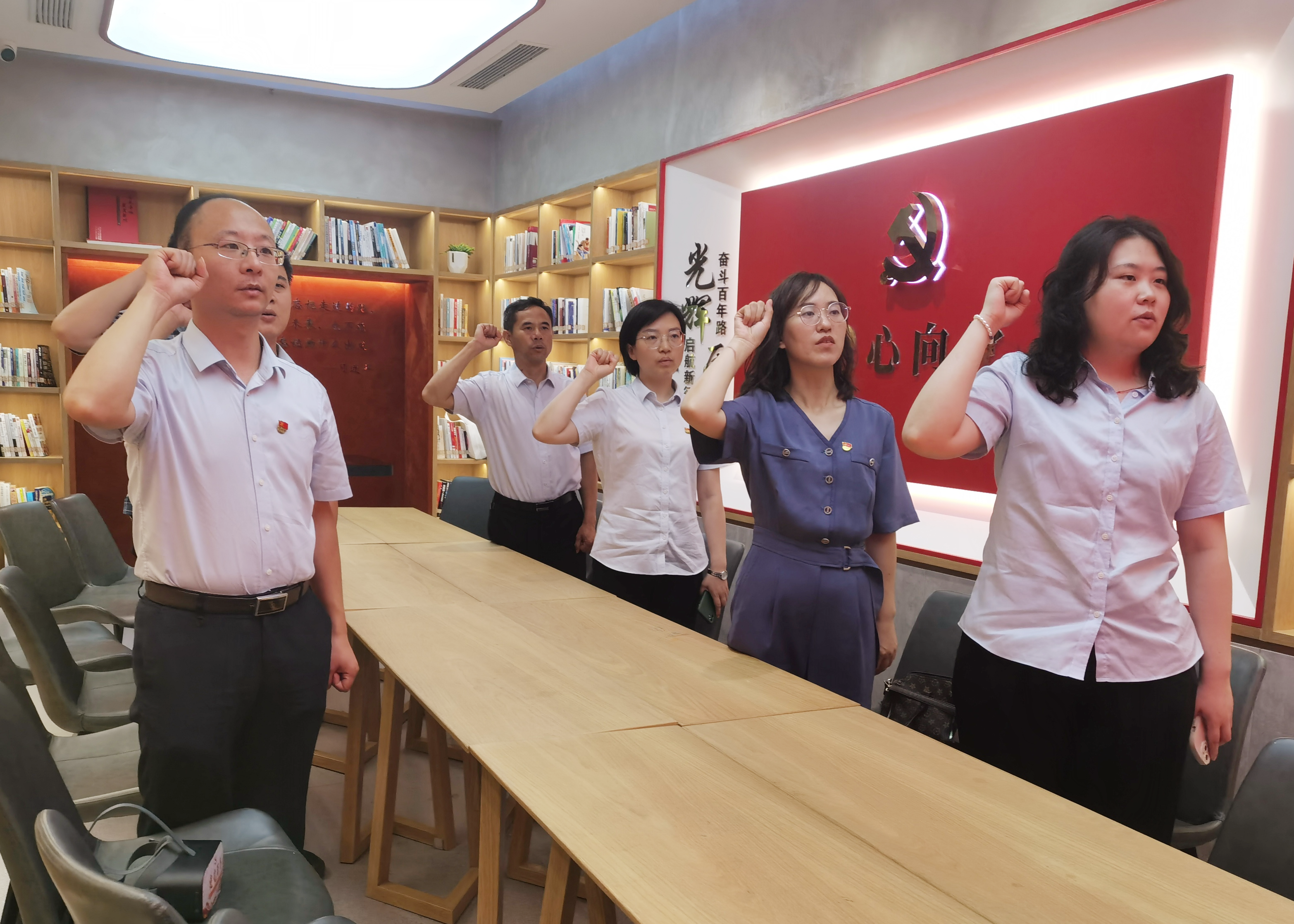 活動中,黨員們參觀了“E時光”書屋,配戴VR眼鏡,沉浸式體驗E心向黨數(shù)字黨建館中的《中華人民共和國成立》《西柏坡紀念館》《網(wǎng)信滁州數(shù)字館》等場館,并進行了黨史知識在線測試答題。通過觀看珍貴的歷史畫面,學習傳承中國共產(chǎn)黨在長期奮斗中鑄就的偉大精神。活動最后,全體黨員重溫了入黨誓詞。