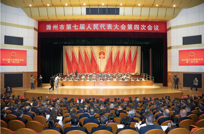 大會會場氣氛熱烈、莊重。主席臺帷幕中央,鮮艷的紅旗簇擁著莊嚴的國徽。二樓眺臺上懸掛的“深入學習貫徹習近平總書記考察安徽重要講話精神,真抓實干、創(chuàng)先爭優(yōu),奮力譜寫現(xiàn)代化新滁州建設(shè)新篇章!”大幅標語鼓舞人心,催人奮進。